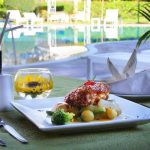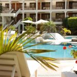 Cada habitación cuenta con baño privado, TV por cable y vistas a la piscina. El desayuno está incluido.