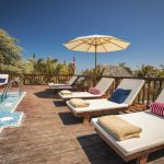 Desde nuestros dominios podrás observar un mar turquesa, libre de rocas y acantilados, ademas estamos rodeados de arboles y plantas de la zona que adornan el paisaje, todo pensado para que los huéspedes disfruten al máximo.